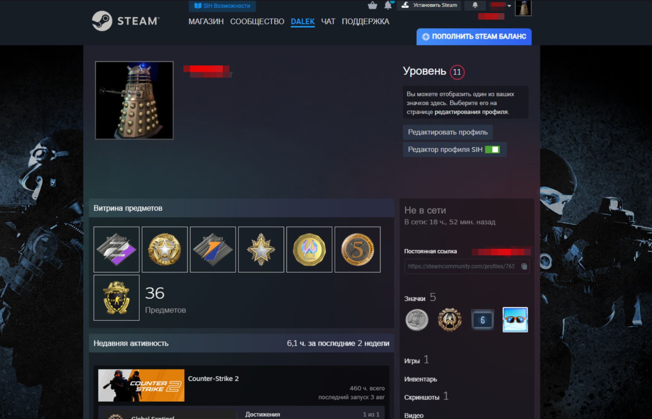⭐️Звание: Gold Nova 3st; 🌟Prime Status: Есть; ⏱️Часов в игре: 2200;