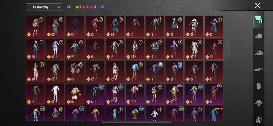 👚Топ костюмы: 65; ⭐️Royale Pass: с 5 сезонна; 🌈Скины на оружие: 36;