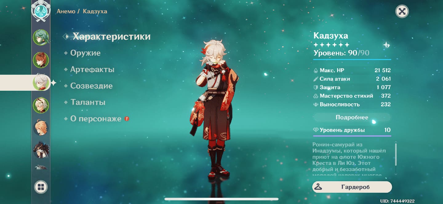 📈 Ранг: 55 🧍♀️ Персонажи: Бай чжу, Тигнари, Сайно и другие 🦾 Оружие: 5 звезд ✨ Примогемы: 85